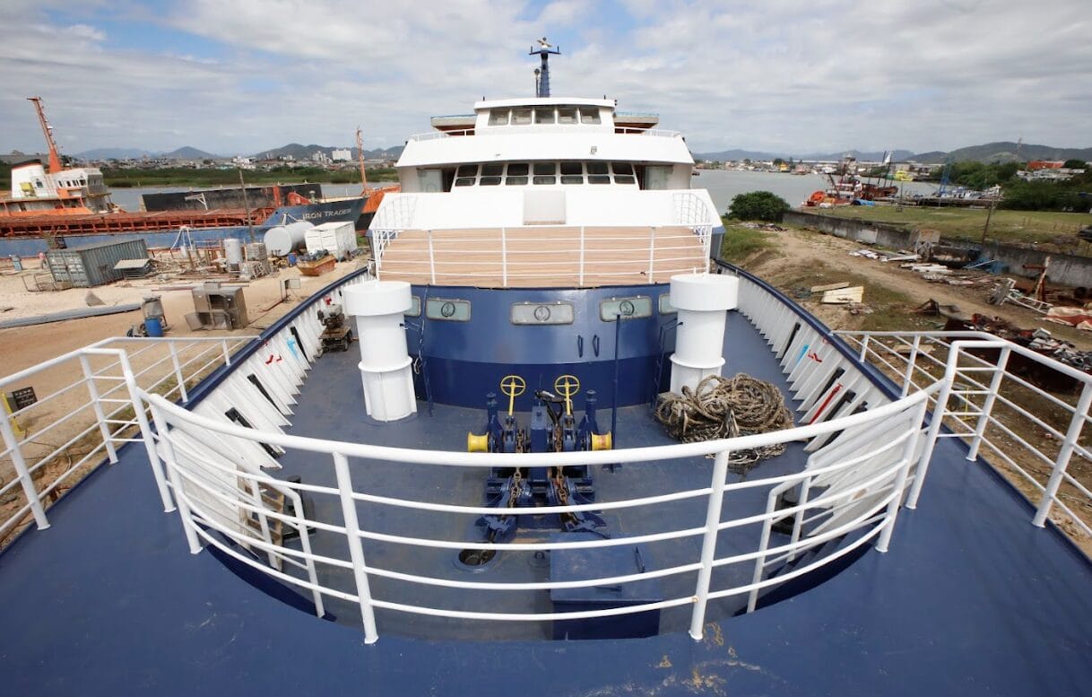 Além dos desafios técnicos, o engenheiro enfrentou uma longa batalha burocrática com a Marinha. O tamanho do barco exigiu uma série de autorizações especiais, que não vieram com facilidade. Foram quatro anos parado em Florianópolis à espera de uma solução. Uma reforma anterior, inclusive, chegou a ser feita. Proibido de sair, o iate continuou exposto aos efeitos do tempo.