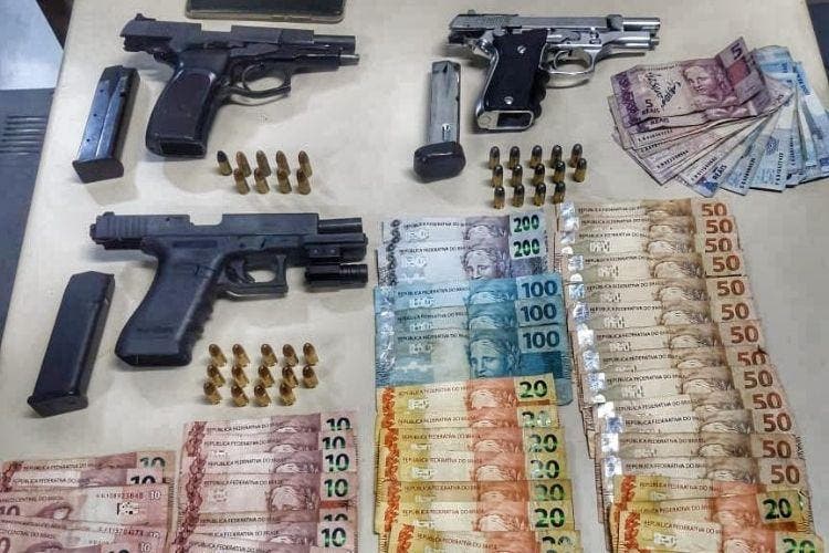O outro portava uma pistola calibre 380, também com 14 munições. Na garagem do sítio foi encontrada outra arma de 9mm e nove munições que pertenciam a um terceiro indivíduo.