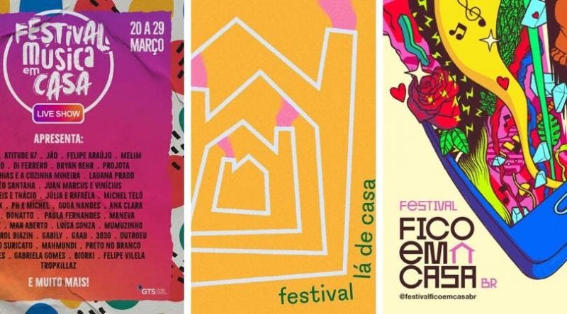 Já o Festival Lá de Casa contará com 42 lives de música, cinema, fotografia e arte, entre os dias 20 e 22 de março. O Festival Fico em Casa acontece de 24 até 27 março, com mais de 60 apresentações e em 40 horas. Todos, segundo o festival, com formatos inéditos e intimistas.