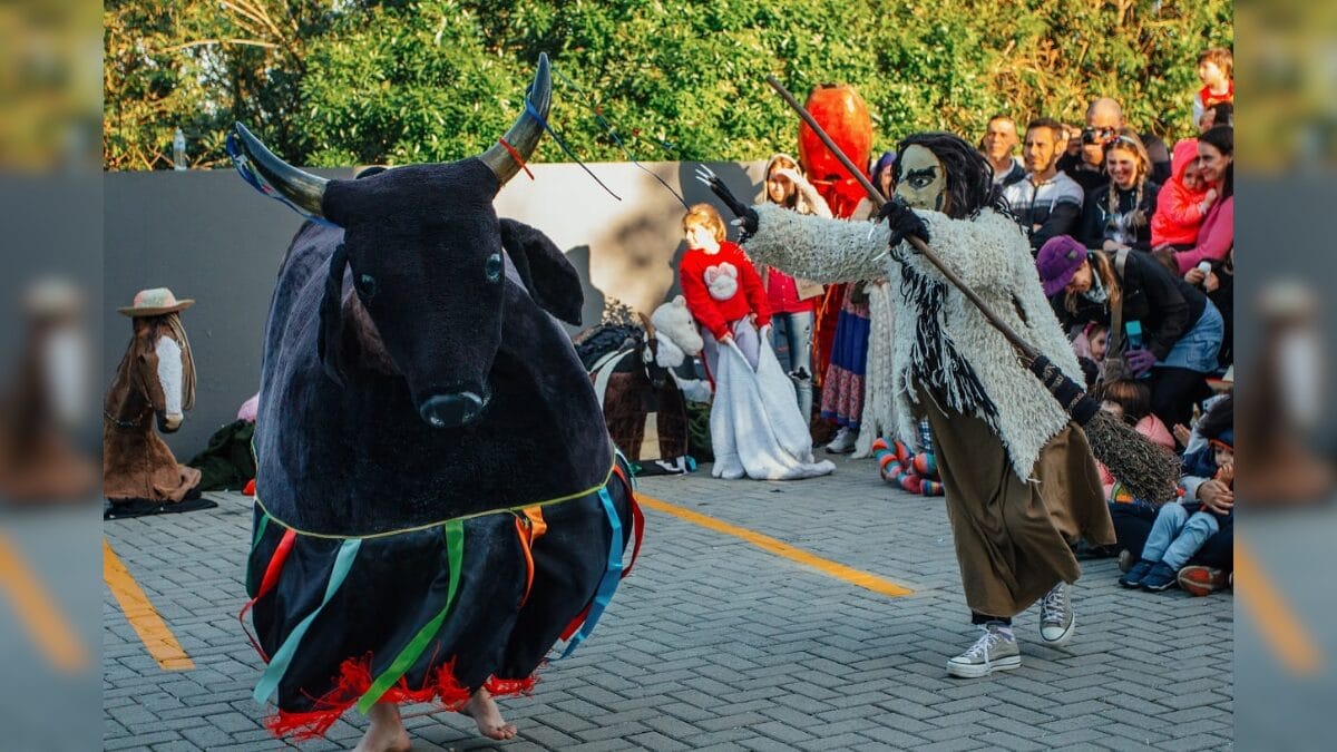 De origem açoriana, o Boi de Mamão reúne danças, músicas, encenações e personagens simbólicos em uma trama que gira em torno da morte e da ressurreição do boi, trazendo elementos de humor, crítica social e memória coletiva, transmitidos de geração em geração.