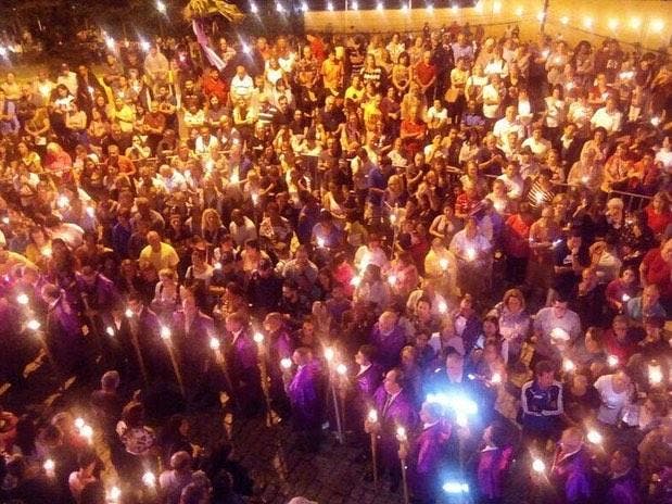Fiéis acompanharam, na noite deste sábado (6), a Procissão da Transladação das Imagens do Senhor Jesus dos Passos e de Nossa Senhora das Dores, que faz parte da 253ª Procissão do Senhor dos Passos. Nem a chuva, que caía na hora do cortejo, espantou os participantes. Segundo a organização do evento, o Corpo de Bombeiros estima que 20 mil pessoas participaram da procissão. A Polícia Militar ainda não divulgou o número do público.