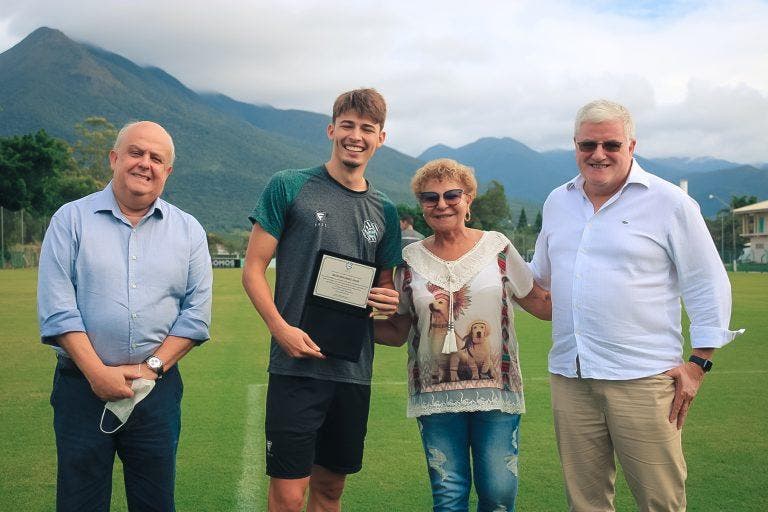 — A direção do Figueirense tem o hábito de reconhecer os feitos dos jogadores. Desta vez fazemos uma homenagem a um atleta deste grupo por um feito alcançado por ele neste momento sob o comando do treinador Jorginho. Por isso chamo aqui o Lincon Marcondes Júnior — disse o presidente alvinegro antes da entrega do presente ao profissional.