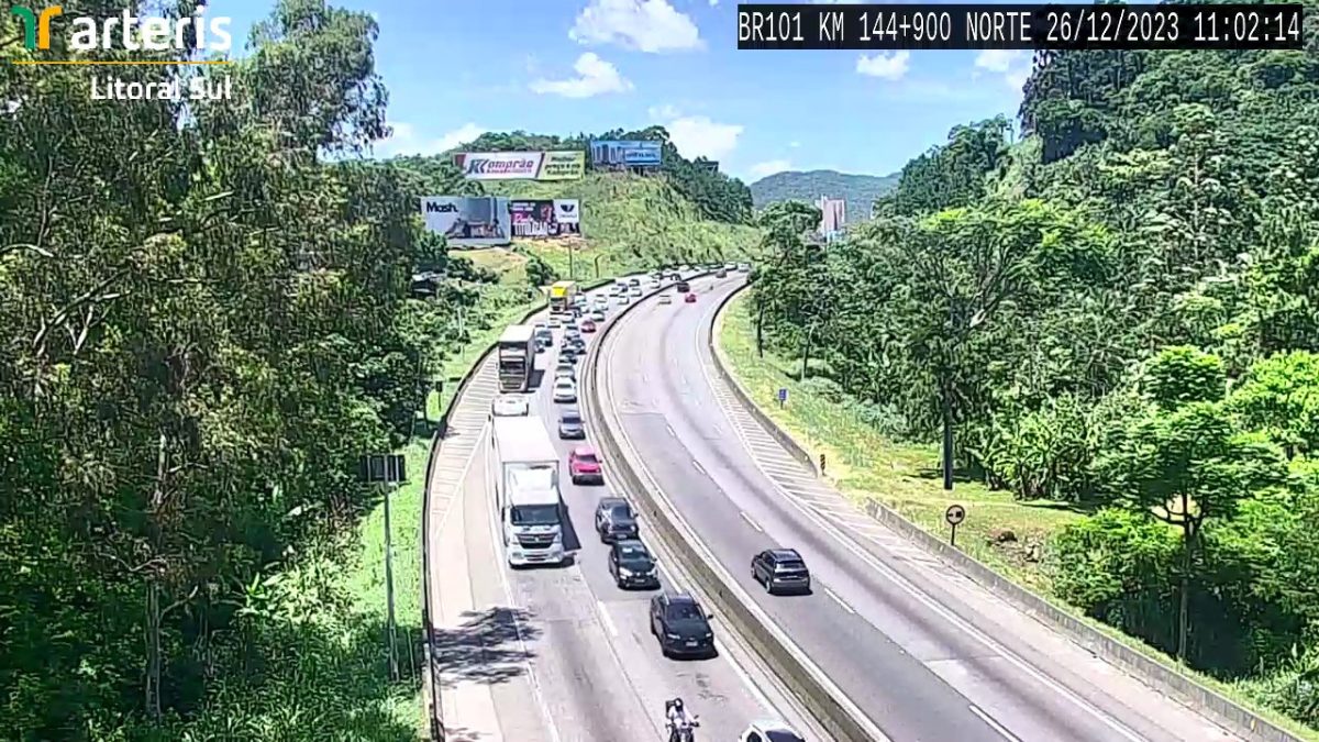 Segundo a Arteris Litoral Sul, concessionária responsável por administrar trechos da BR-101, os condutores podem enfrentar até 17 quilômetros de lentidão entre Joinville e Araquari, também no Litoral Norte, no sentido Porto Alegre.