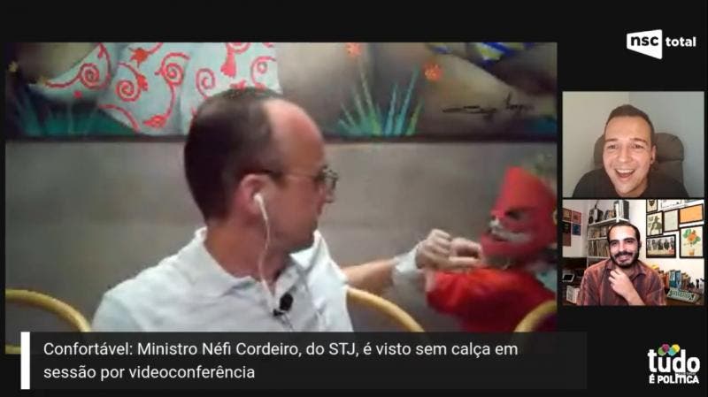 Na transmissão desta semana do Tudo é Política, programa com os colunistas da NSC Comunicação, quem roubou a cena foi o filho de Renato Igor. Fantasiado de Flash, o pequeno Bernardo Igor, de apenas 4 anos, resolveu falar com o pai em frente à camera justamente quando o jornalista comentava sobre uma gafe cometida por um ministro do STJ ao aparecer de cueca em uma sessão por videoconferência.