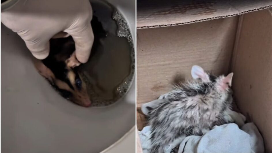 Um filhote de gambá passou por um momento de sufoco após cair em um lugar inusitado. O animal foi encontrado dentro de uma privada, que continha água sanitária gelada. O biólogo Christian Raboch Lempek foi acionado até a casa e precisou resgatar o filhotinho, que ganhou um banho quente e outras “mordomias”. O caso aconteceu em Jaraguá do Sul, no Norte de Santa Catarina, e foi divulgado no domingo (6).
