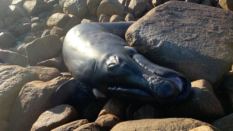 O animal apresentava cerdas bucais não desenvolvidas, além de pregas fetais, o que indicam, conforme o projeto, que é um recém-nascido.