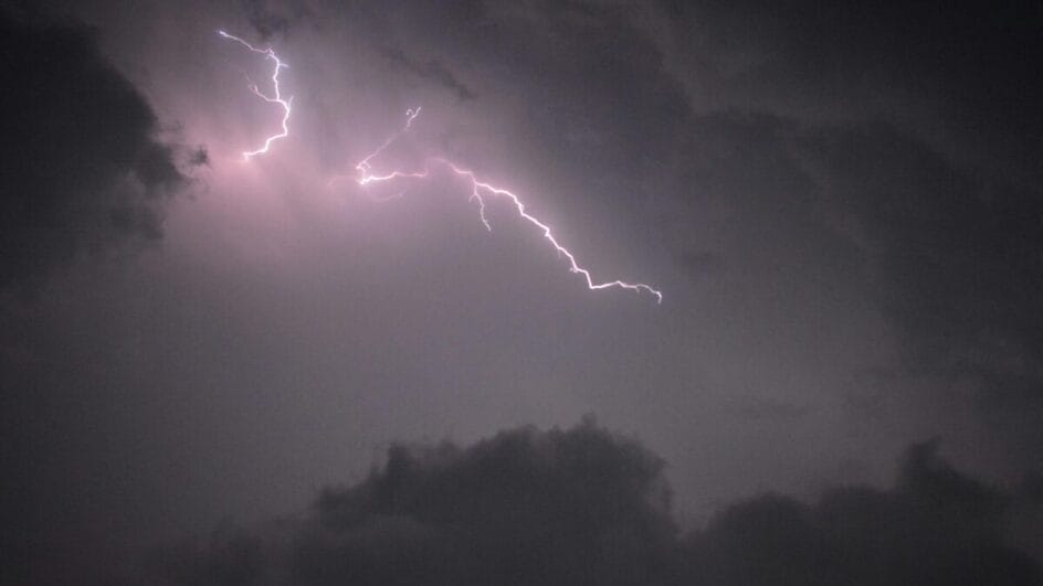 - Condição do Tempo: Sol, nuvens e pancadas de chuva com raios