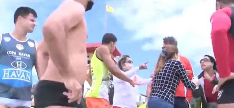 Os profissionais estavam trabalhando, produzindo uma reportagem para o Grupo NSC sobre o movimento nas praias em um momento no qual é crescente o número de casos do coronavírus na capital catarinense, quando foram interpelados por pessoas que estavam na praia sem máscaras e não queriam ser filmadas.