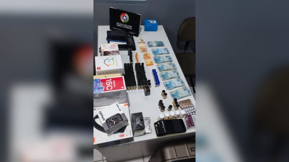 A guarnição policial conseguiu localizar e abordar o veículo que era conduzido pelo homem. Durante buscas no veículo foram encontrados celulares, anabolizantes, máquina de cartão e R$ 7 mil em dinheiro vivo.