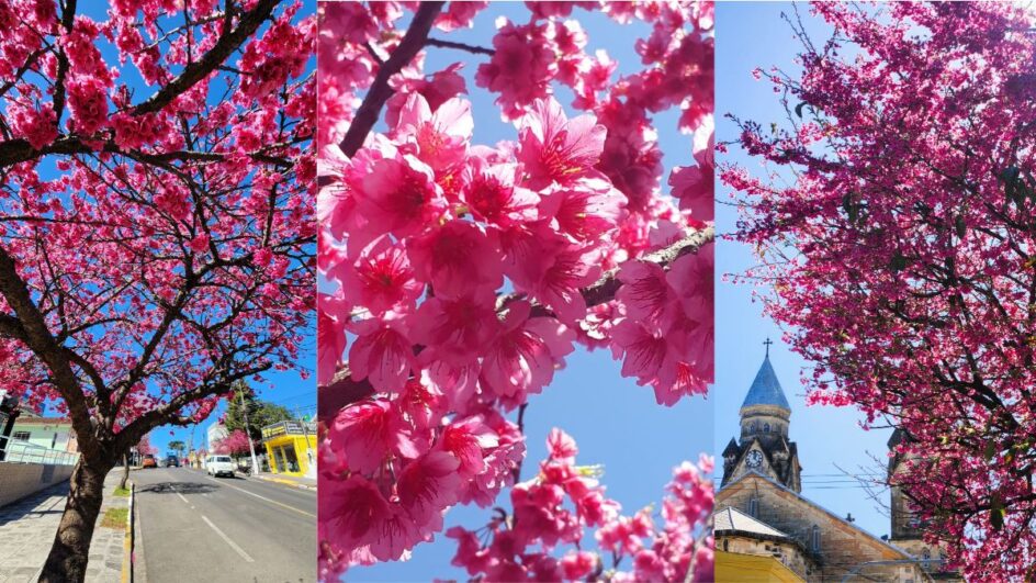 Plantadas lá em 2002, as árvores de origem japonesa se espalham por pontos da cidade. A beleza das flores atrai olhares atentos, visitantes e amantes da fotografia, em busca do clique perfeito.