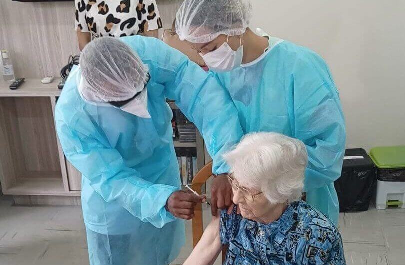 De forma simbólica, a primeira pessoa imunizada em Floriaópolis foi a irmã Olga Maria Brach, de 100 anos. A imunização na manhã desta segunda na Casa Divina Providência, no bairro Trindade.