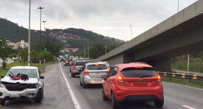 As dificuldades para trafegar começaram antes das 7h, quando, de acordo com o grupo Pista Limpa, uma colisão entre dois carros foi registrada na frente da Sociedade Hípica Catarinense. A Polícia Militar Rodoviária não tinha informações sobre o caso.