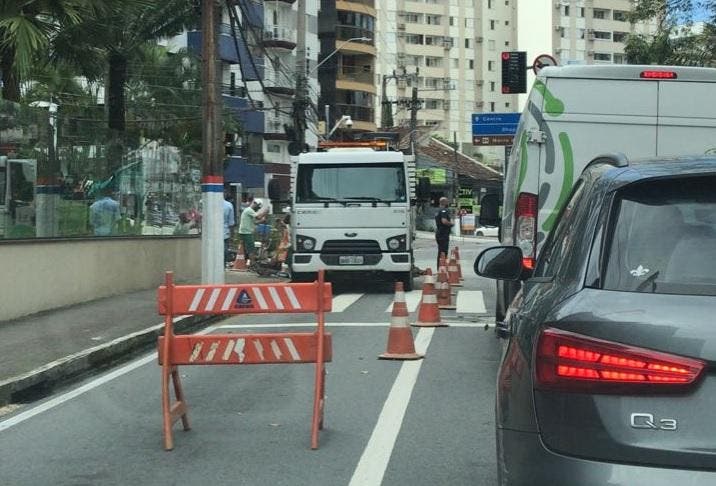 A obra fica na esquina das ruas Frei Caneca com a Allan Kardec, no acesso ao Morro da Cruz. A Companhia Catarinense de Águas e Saneamento (Casan) informou que a operação da equipe deve ser concluída ainda nesta tarde.