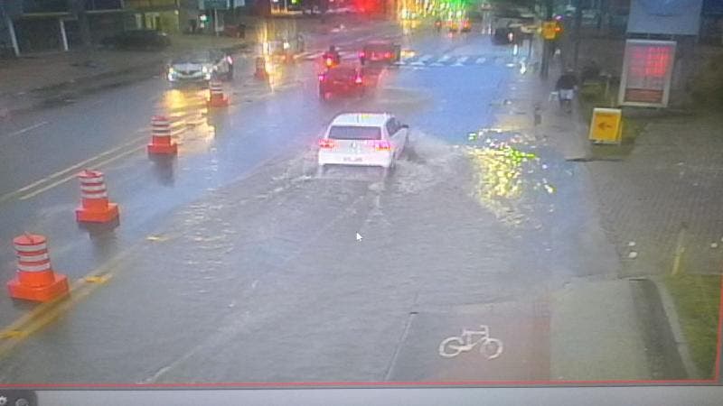 O trânsito na Capital catarinense começa a ser atingido pelos alagamentos já previstos para esta sexta-feira (2), conforme alerta da Defesa Civil. Na SC-405, entre os quilômetros 0,2 e 0,8, a faixa da direita, sentido Centro, está coberta pela água.