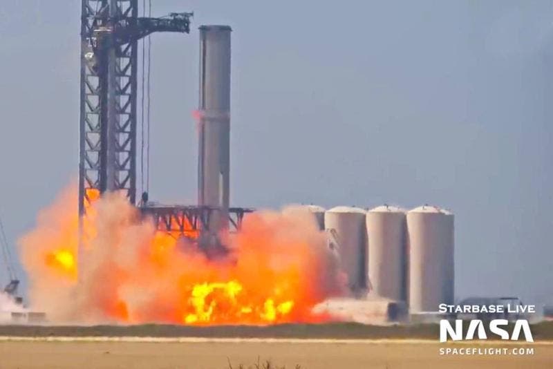 A falha ocorreu no meio de uma sequência de testes de fogo estático realizados em Boca Chica, também no Texas. O foguete era equipado com uma série de 33 motores para uso em um próximo voo de teste orbital não tripulado, que a SpaceX pretendia lançar ainda este ano.