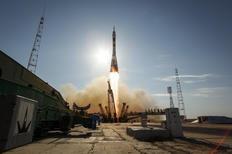 Um foguete russo Soyuz com três astronautas a bordo decolou nesta terça-feira do centro espacial de Baikonur, nas estepes do Cazaquistão, com destino à Estação Espacial Internacional (ISS).