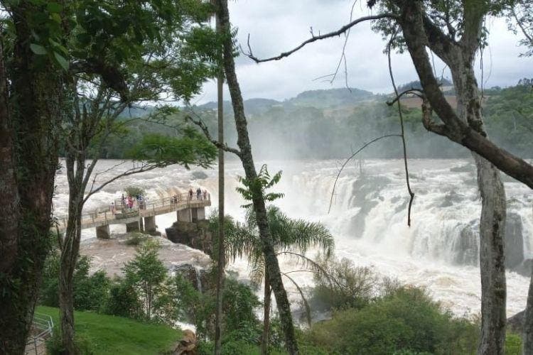 O período de chuvas intenso em Santa Catarina gerou uma paisagem impressionante em Quilombo, no Oeste do Estado. As quedas da água do Rio Chapecó foram registradas por um morador do município neste domingo (17) e mostram a intensidade da correnteza.