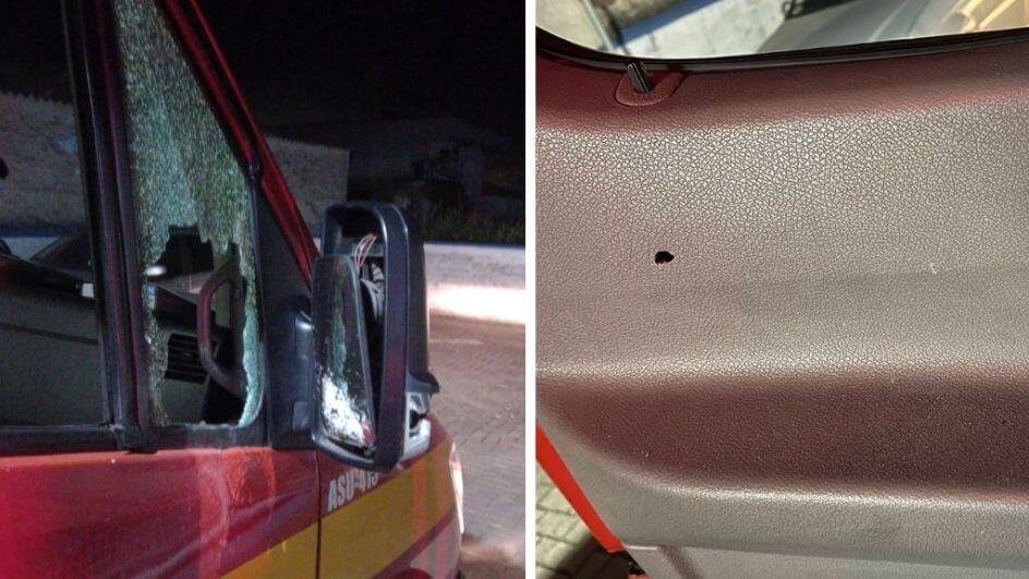 A equipe dos bombeiros atendia uma vítima de disparo de arma de fogo no bairro Espinheiros quando foi alvejada, na noite de sábado. A Polícia Militar informou que o homem ferido tem envolvimento com tráfico de drogas e acredita que tenha havido um acerto de contas.