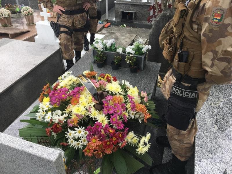 O Dia de Finados foi de homenagem também para cinco policiais militares no Cemitério do Itacorubi, em Florianópolis. Membros da corporação foram até o túmulo do cabo Vinícius Gonçalves, morto durante uma operação no Morro do Horário em setembro de 2016, lembrar do colega. Em tom solene, depositaram uma coroa de flores e fizeram orações.