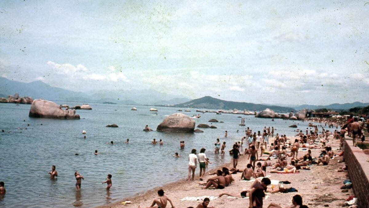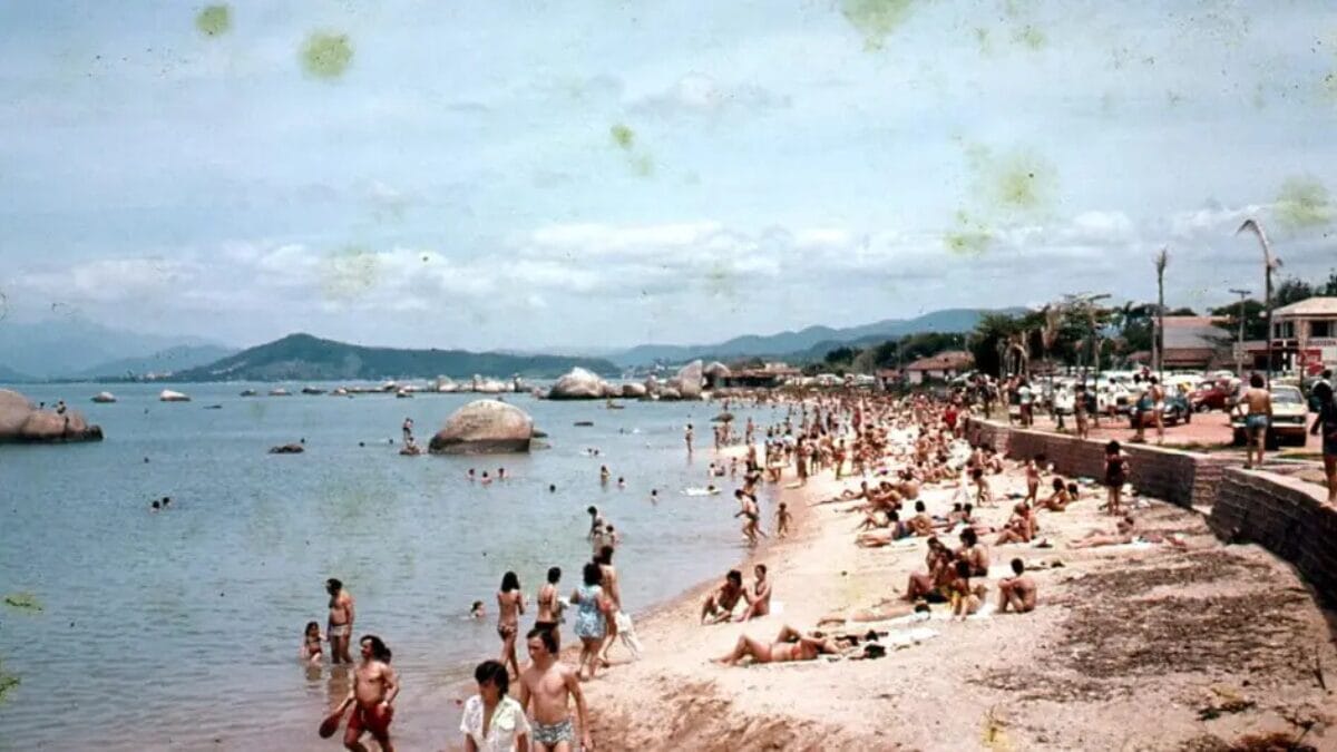 Fotos da década de 1970 revelam uma Florianópolis bem diferente da atual. Há mais ou menos 50 anos, o verão na capital catarinense tinha trajes vintage, kombis e fuscas estacionados na faixa de areia e muita diversão nas praias do Continente.