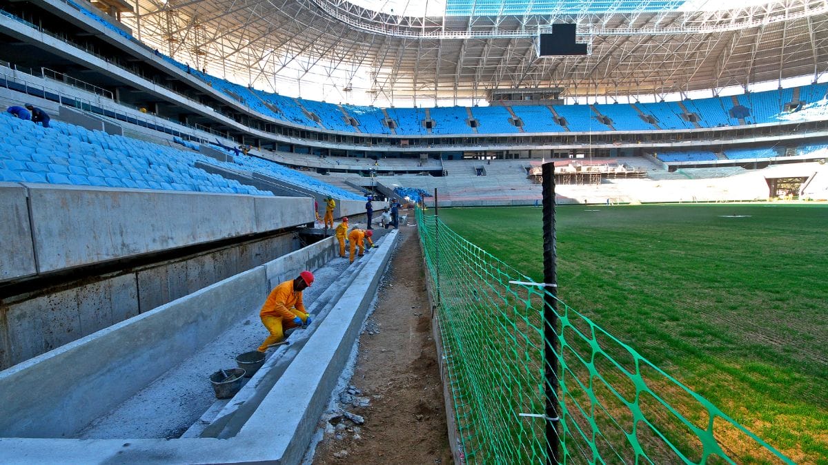 Além disso, conta com quatro vestiários padrão Fifa, com área coberta para aquecimento dos jogadores, banheiras de hidromassagem e piscinas de gelo.