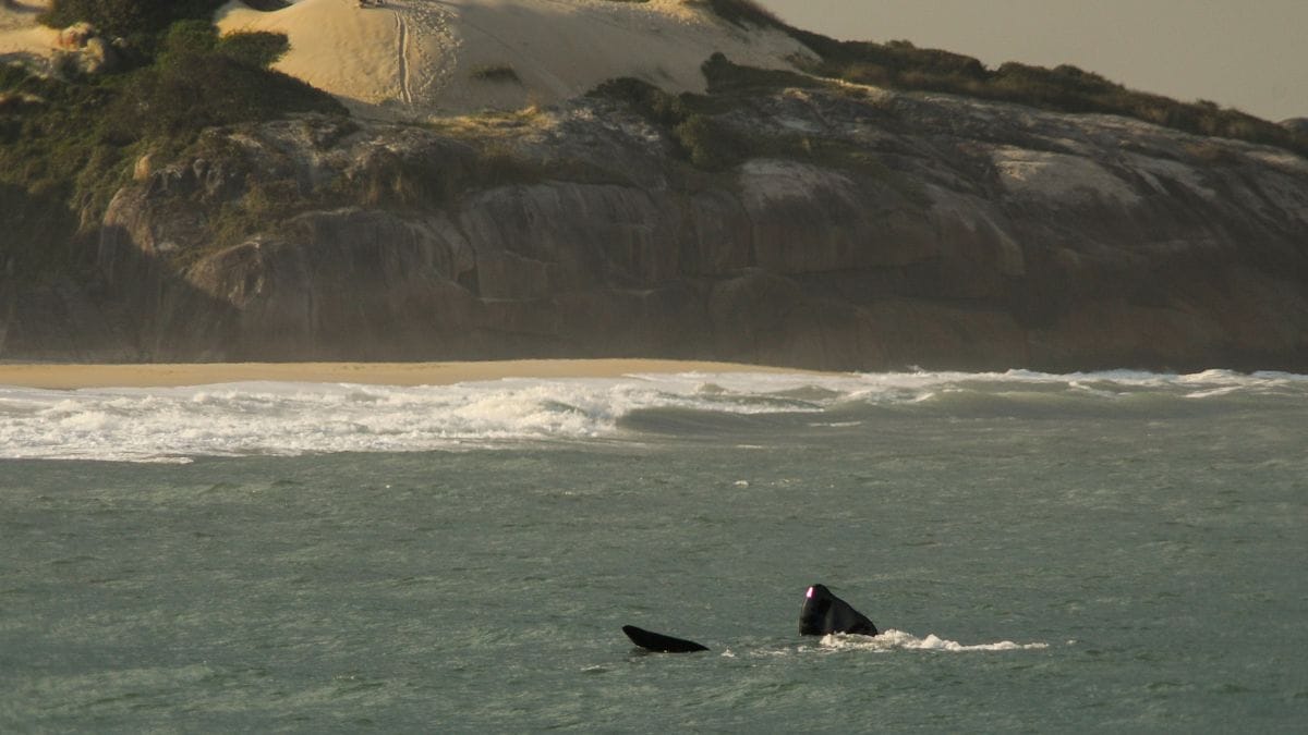 — Essa região aqui no Sul do estado é a principal área de concentração reprodutiva da espécie. A praia da Gamboa é uma das enseadas preferidas das baleias-francas, porque as baleias vem para o nascimento dos filhotes. A fêmea chega aqui grávida e elas permanecem aqui até que os filhotes fiquem fortes — afirmou Karina Groch, diretora de Pesquisa do Instituto Australis.