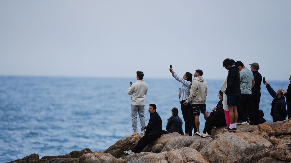 Turistas e moradores da região, que avistarem os animais, podem observar os mamíferas de uma distância segura. No domingo (17), diversas pessoas se deslocaram para a orla da praia para ver as baleias e foram surpreendidas pelo espetáculo nas águas.
