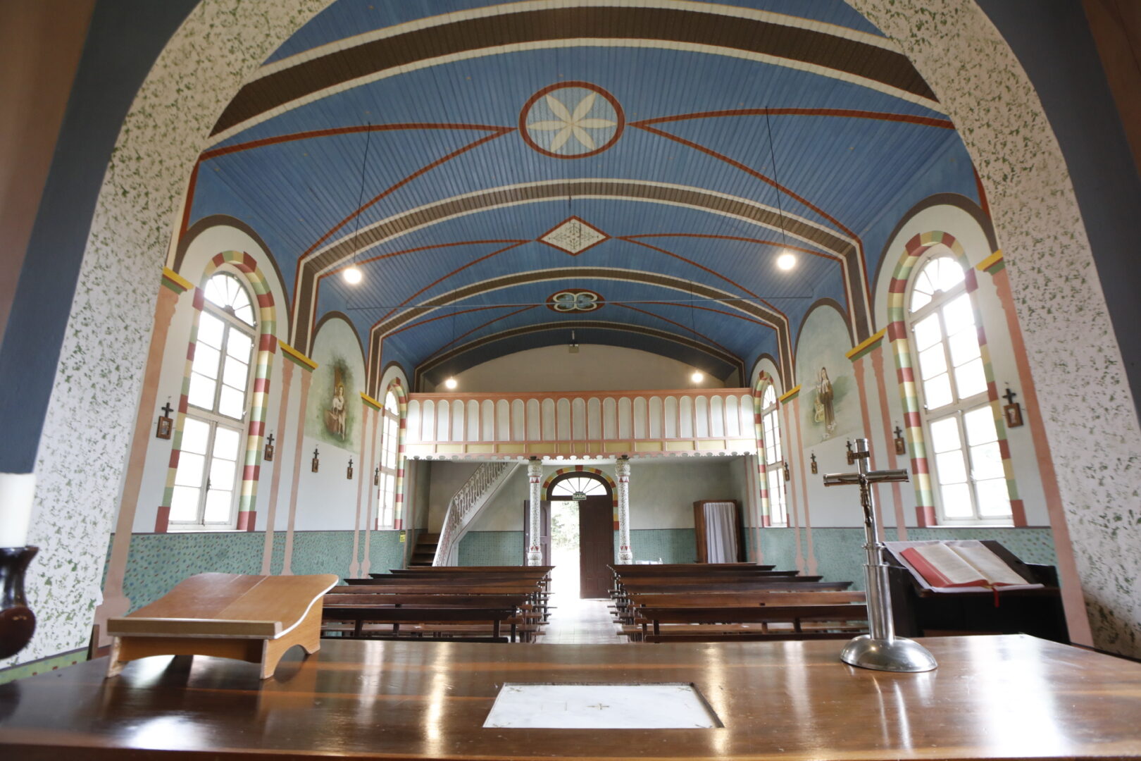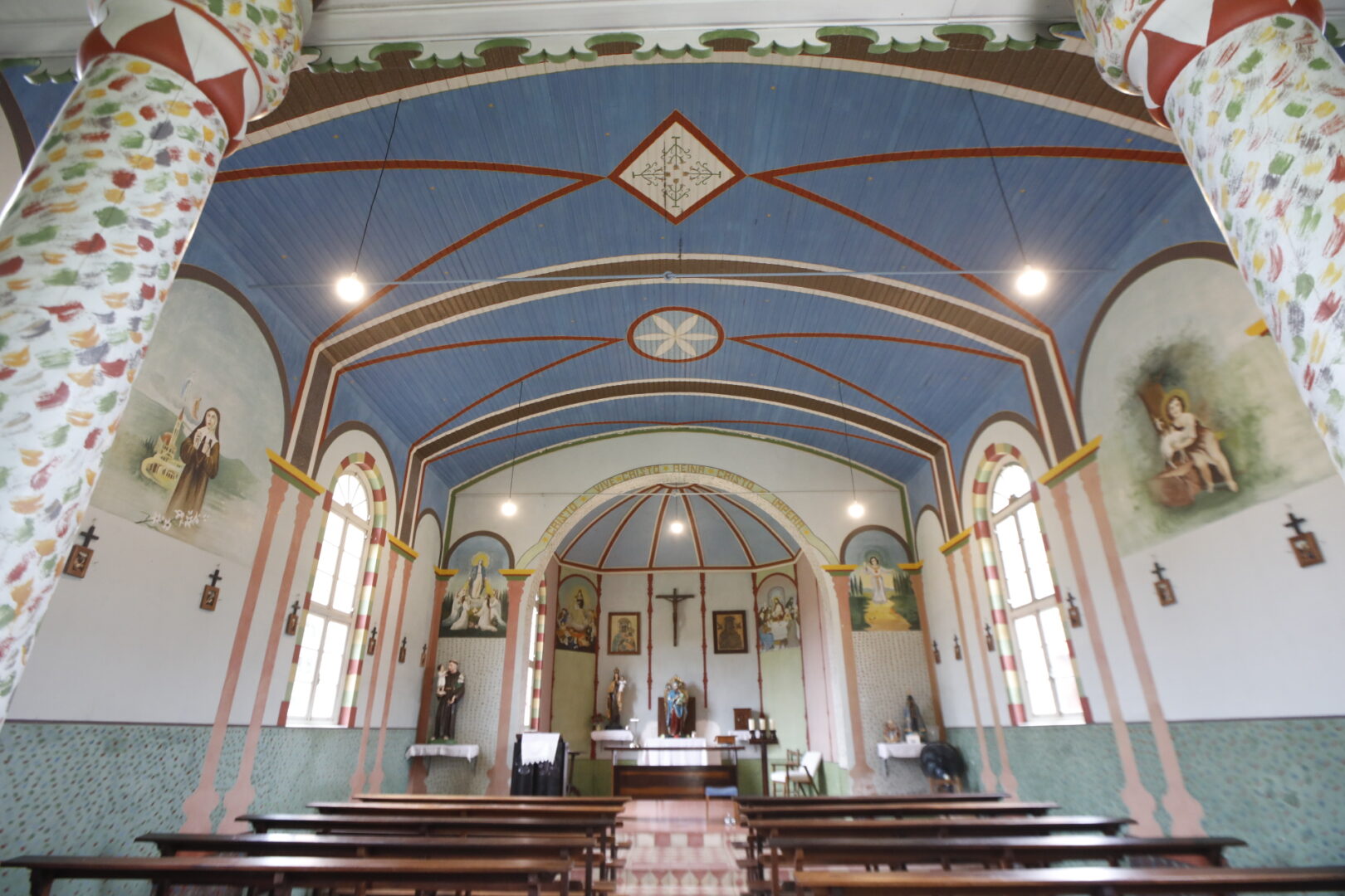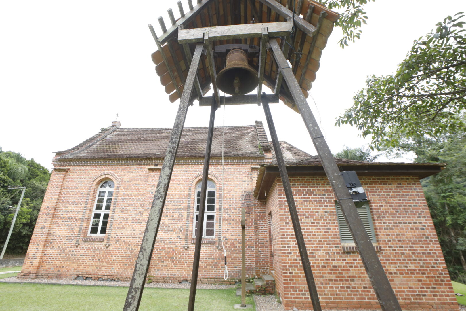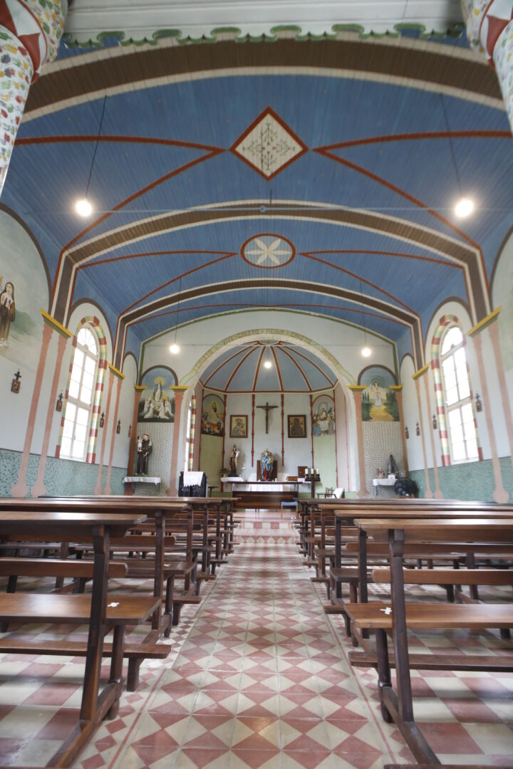 Tombada em nível federal desde 2007, a igreja começou a ser erguida na década de 1920 pelo alemão Júlio Stoy e é uma verdadeira exuberância por dentro. As cuidadosas pinturas, que foram restauradas pelo Instituto do Patrimônio Histórico e Artístico Nacional (Iphan) em 2016, por exemplo, trazem cor ao pequeno ambiente bucólico. O teto azulado com listras vermelhas, o piso em xadrez, os banquinhos de madeira. Cada detalhe torna a capela um espaço totalmente singular.