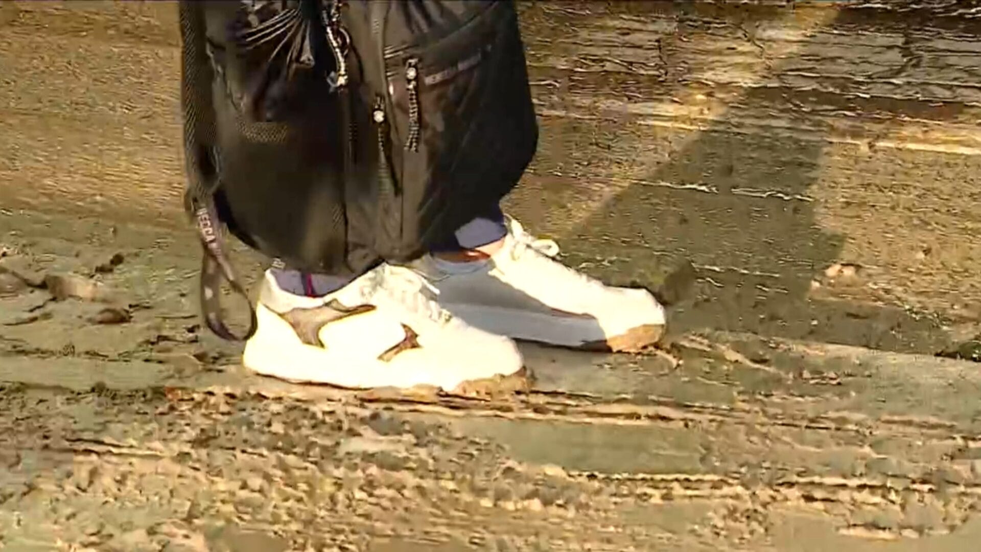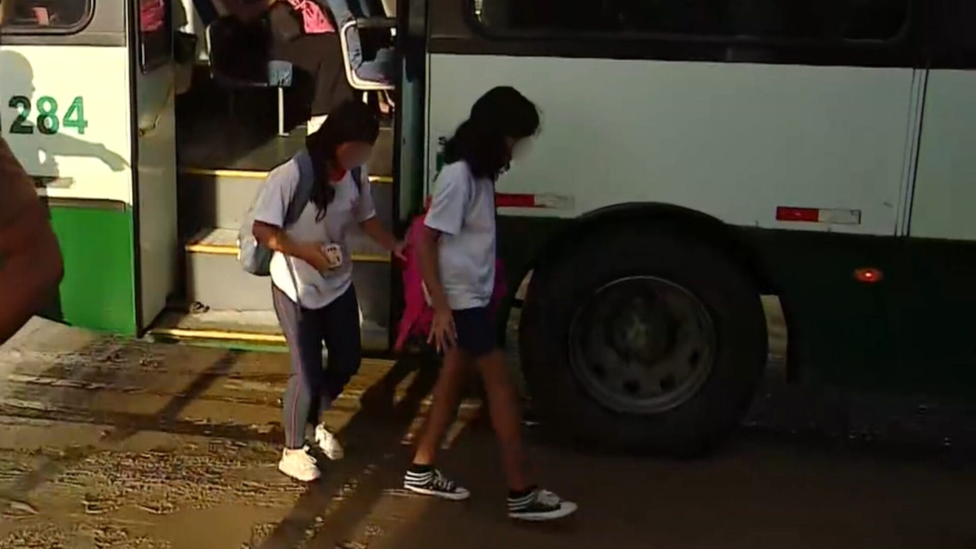 Já Marinês foi uma das pessoas que sujou os sapatos ao descer do ônibus no Centro de Palhoça. À reportagem, disse: