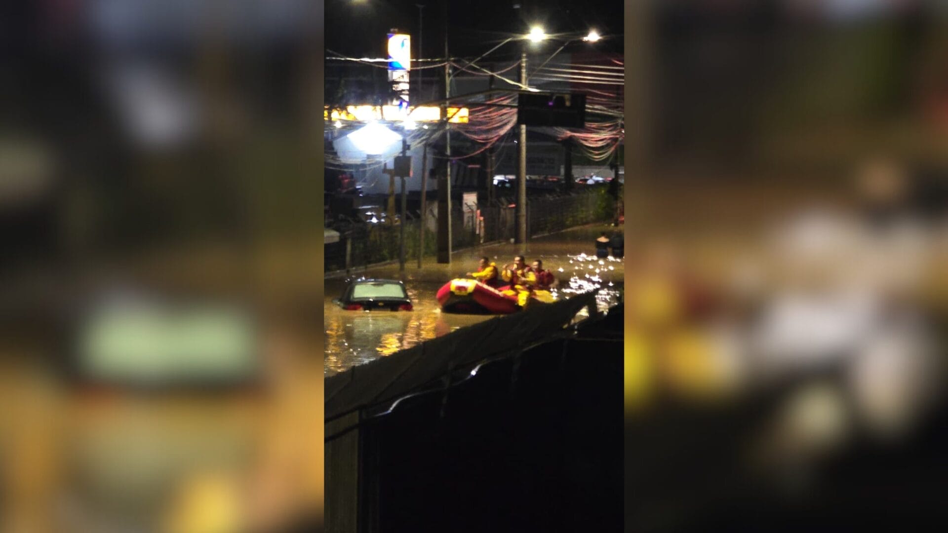 O Corpo de Bombeiros Militar disse ao NSC Total que recebeu alguns chamados relacionados à inundação, principalmente nos bairros Praia de Fora e Bela Vista. No aplicativo 193, um pedido de resgate de um casal de idosos em situação de perigo em inundação foi feito aos bombeiros por volta das 21h15min, no bairro Bela Vista.