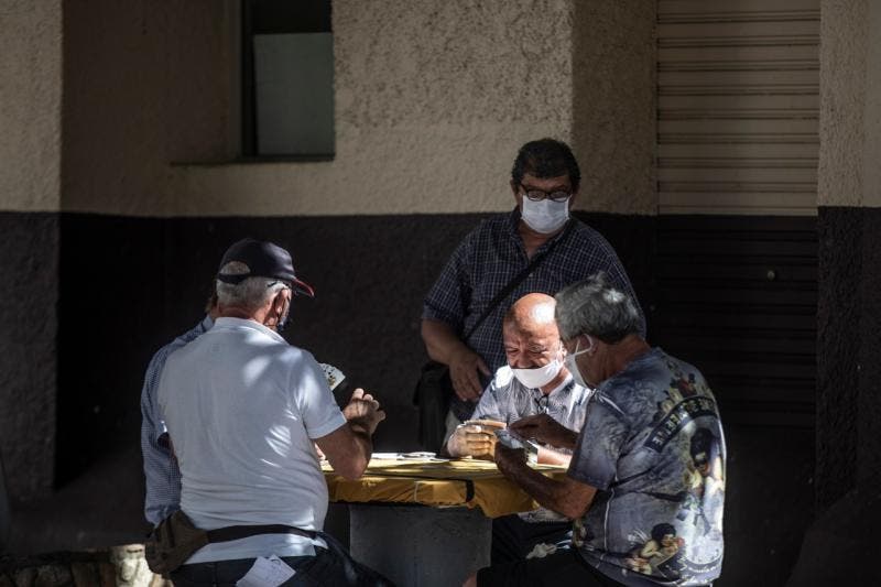 Apesar do apelo das autoridades para que a população só vá às ruas em caso de real necessidade, foi possível ver até mesmo um grupo de idosos, um dos grupos de risco de complicações da Covid-19, jogando baralho em uma praça próximo à Catedral, no Centro da Capital.