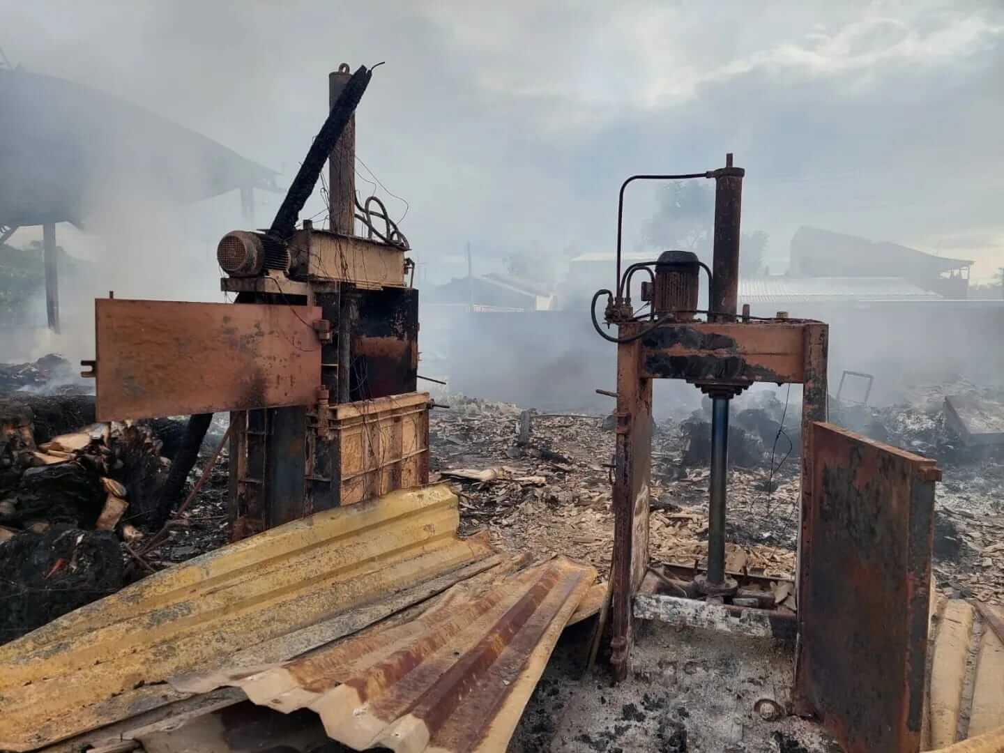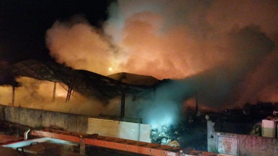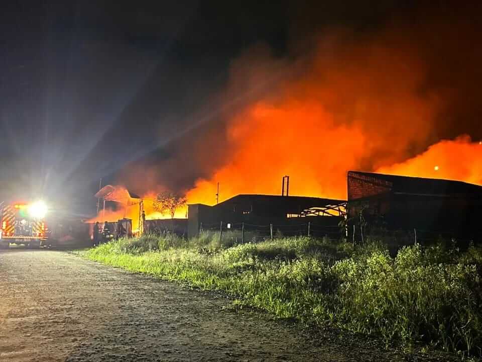 Um incêndio atingiu um depósito de materiais recicláveis na noite desta terça-feira (25), no bairro Samambaial, em Itapoá. Uma casa que estava no mesmo pátio também foi atingida pelas chamas.