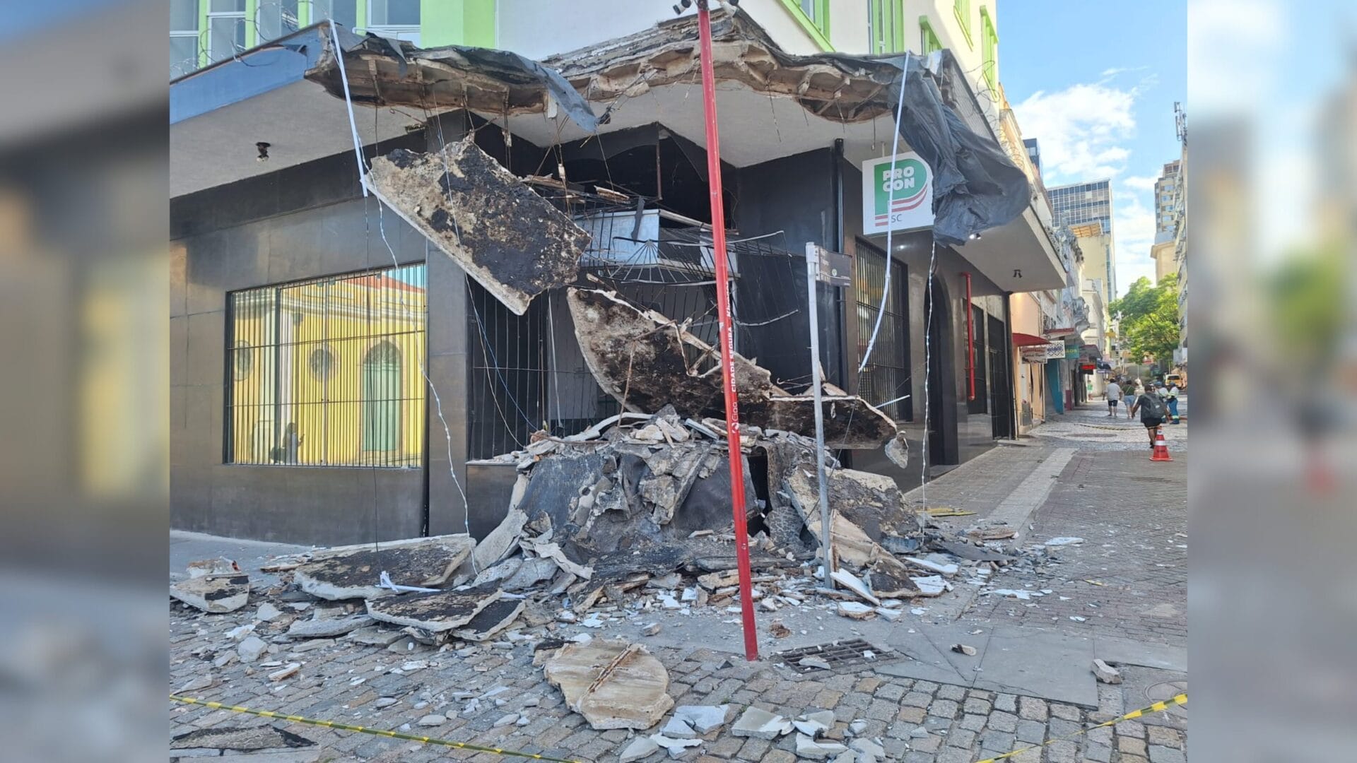 Parte da marquise do edifício do Procon, no Centro de Florianópolis, desabou na noite deste domingo (18) (veja fotos abaixo). De acordo com o Corpo de Bombeiros Militar de Santa Catarina (CBMSC), que atendeu a ocorrência, não houve feridos. As causas serão investigadas e a empresa responsável por uma obra recente no local será notificada.