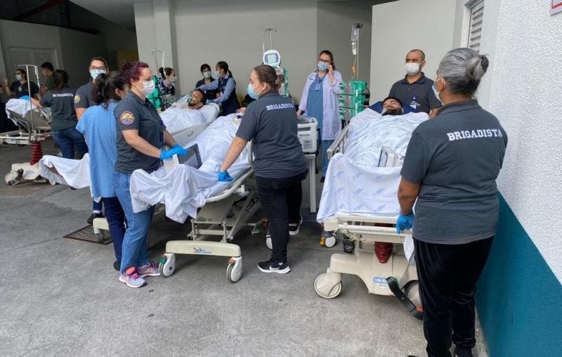No simulado, três alas do hospital foram “atingidas” por um incêndio, entre elas as UTIs Geral e Coronariana, onde supostas 30 vítimas foram socorridas. A partir do alerta de incêndio, os brigadistas da instituição acionaram bombeiros e Defesa Civil e iniciaram o protocolo de evacuação.