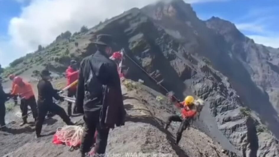 Registros feitos pelo Parque Nacional Gunung Rinjani, na Indonésia, mostram a estrutura montada para tentar resgatar a brasileira Juliana Marins, que caiu na encosta do vulcão Monte Rinjani no último sábado (21). Ela foi encontrada morta nesta terça-feira. As informações são de O Globo.