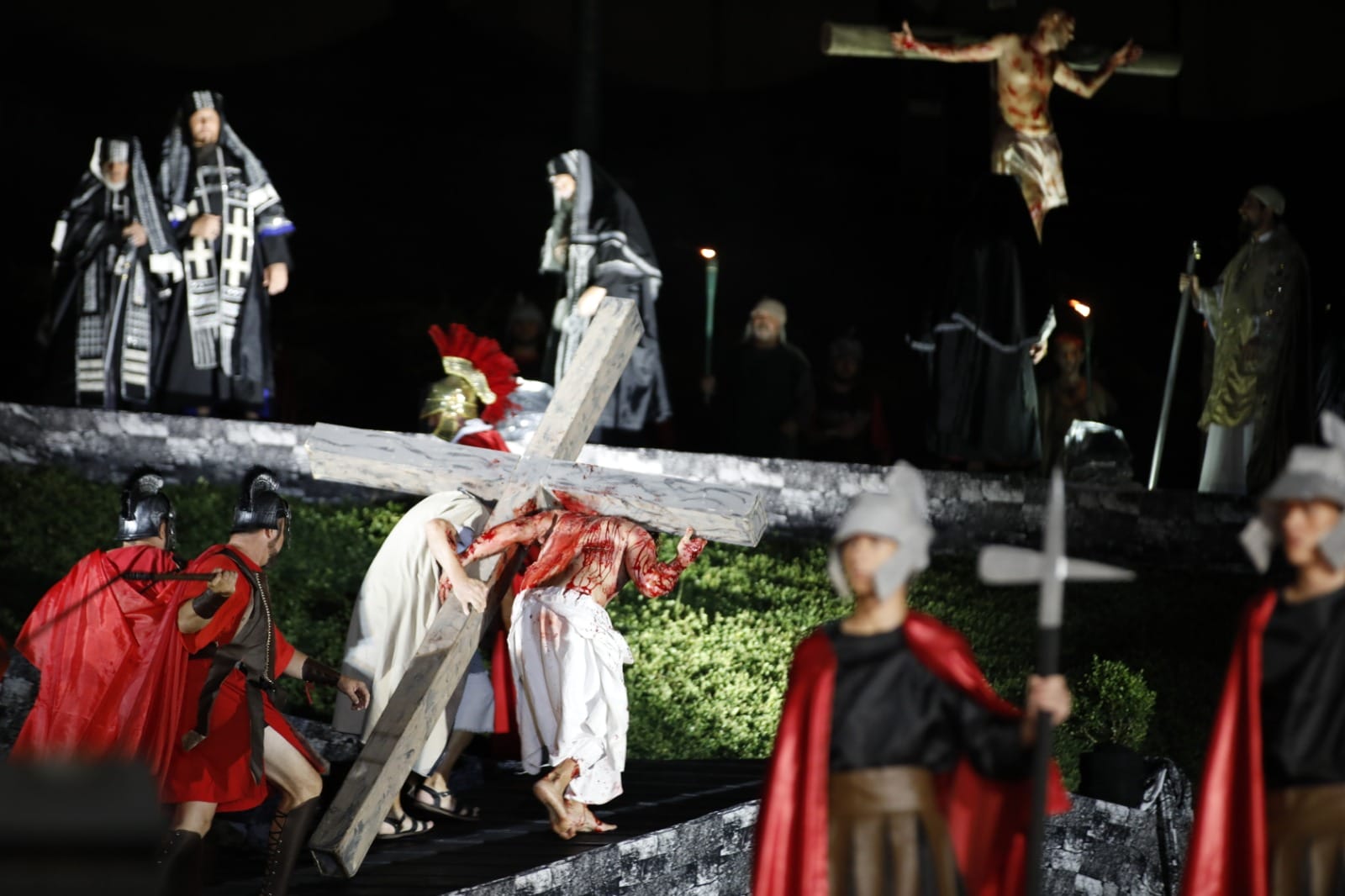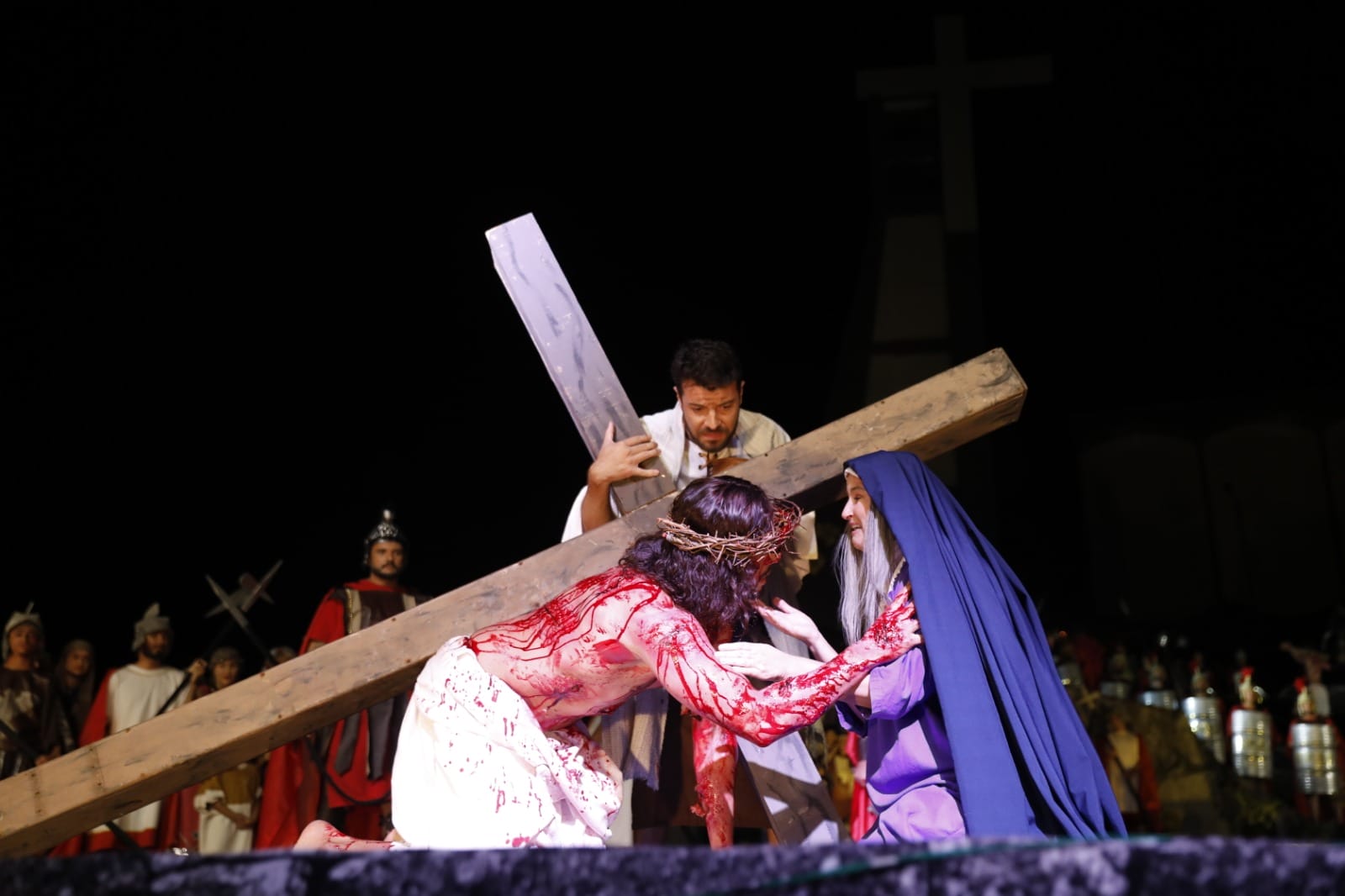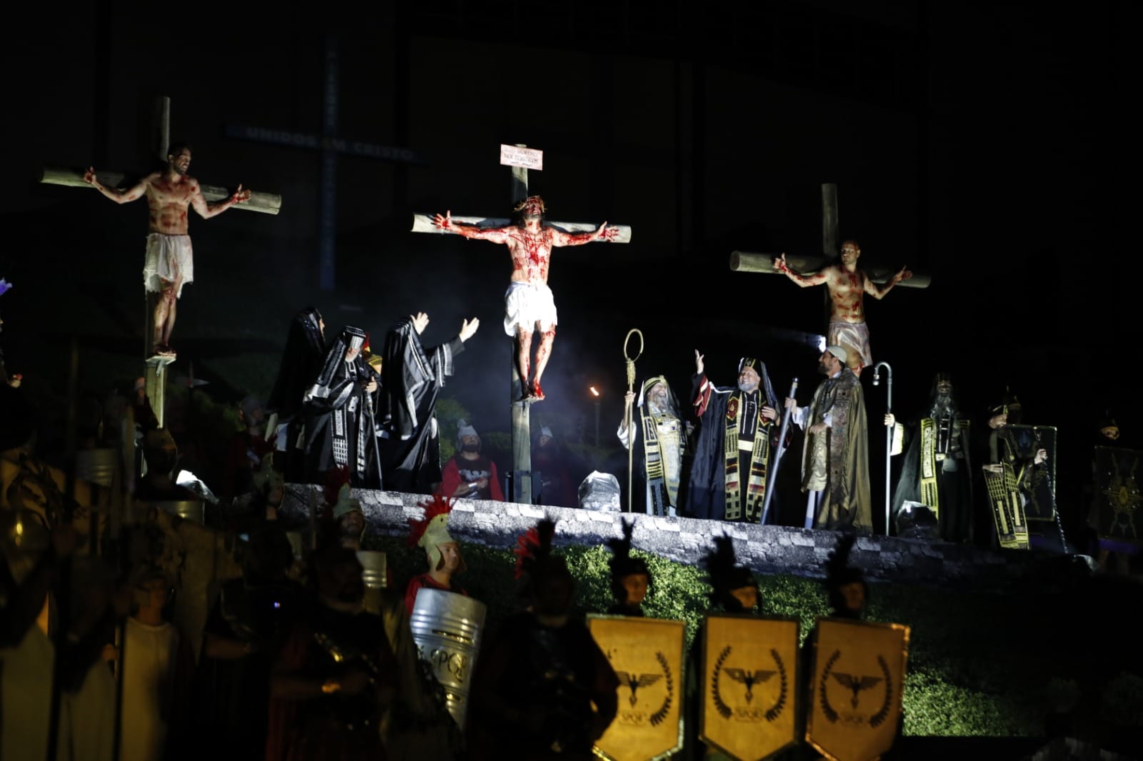 A apresentação de “Paixão e Morte de um Homem Livre” é fruto de um trabalho da Associação Artístico-Cultural São Pedro. São cerca de 500 voluntários envolvidos entre elenco, figurino, maquiagem, produção, cenografia e equipes de apoio.