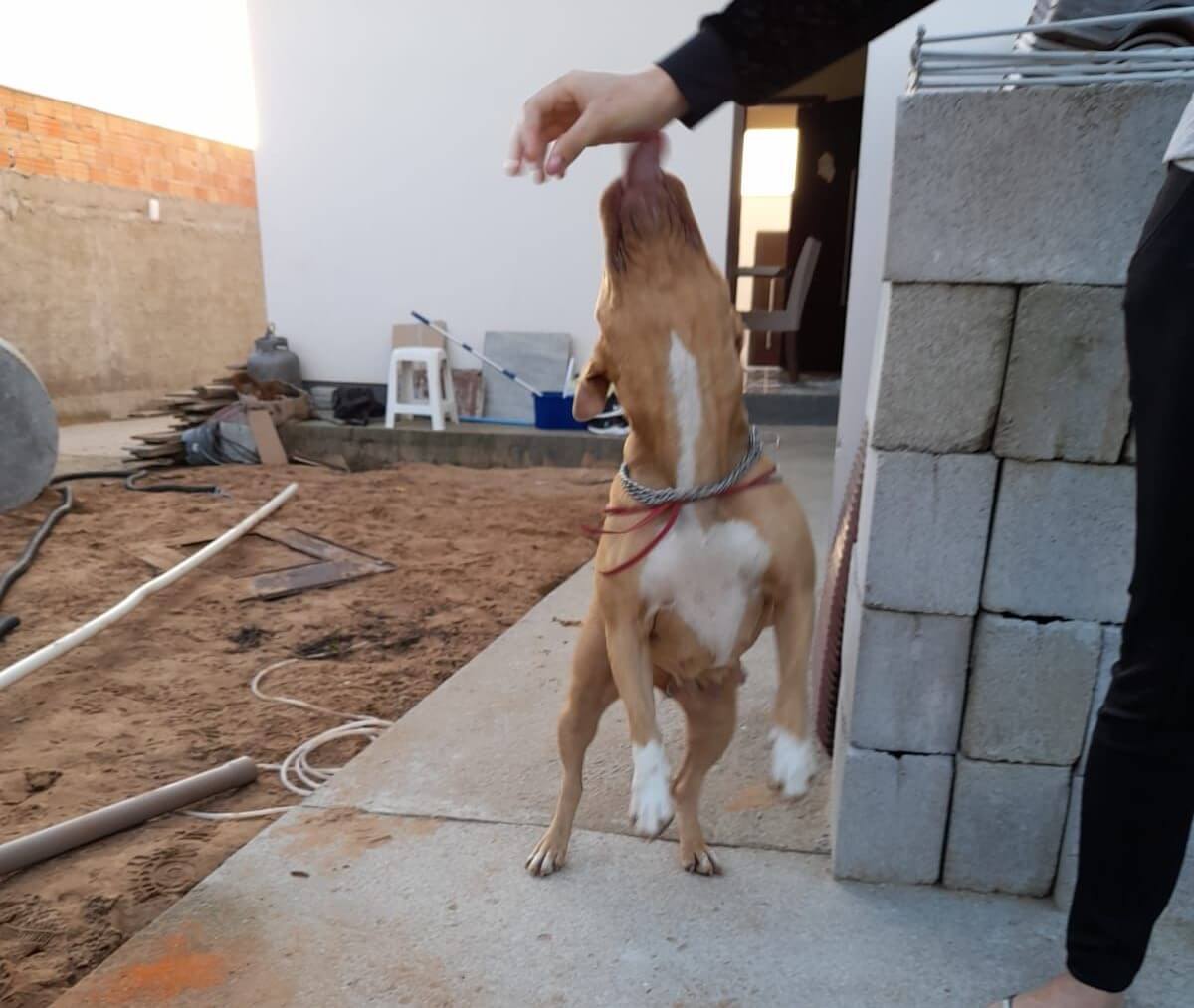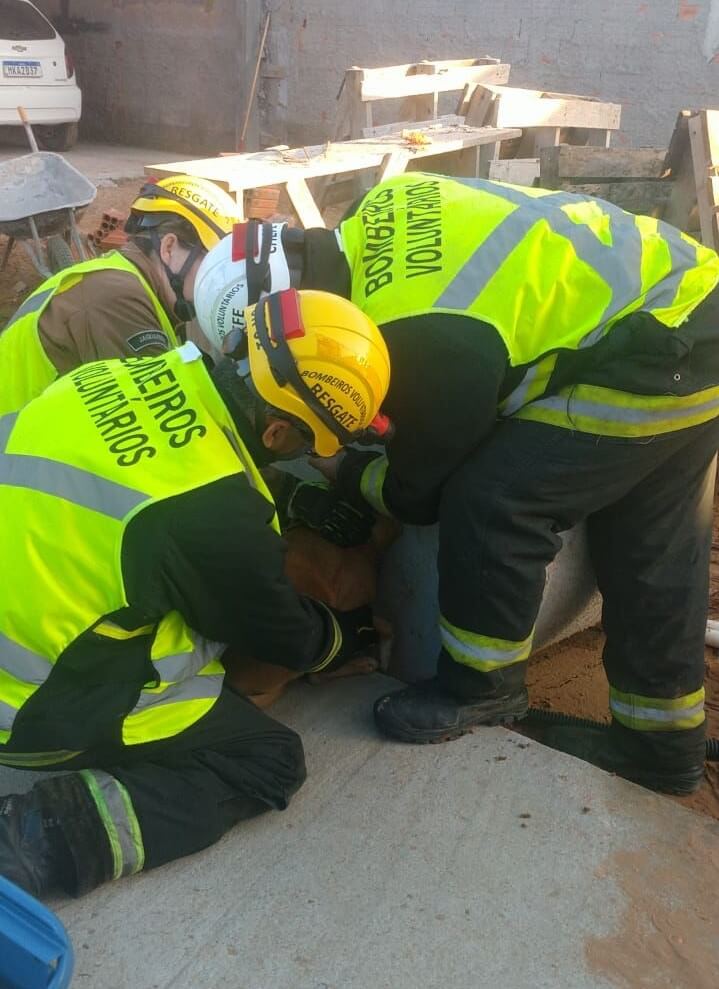 A tutora do animal pediu ajuda logo após ver a cachorra preso. Segundo os bombeiros, o concreto precisou ser quebrado, com ajuda de ferramentas, para garantir a segurança do animal.