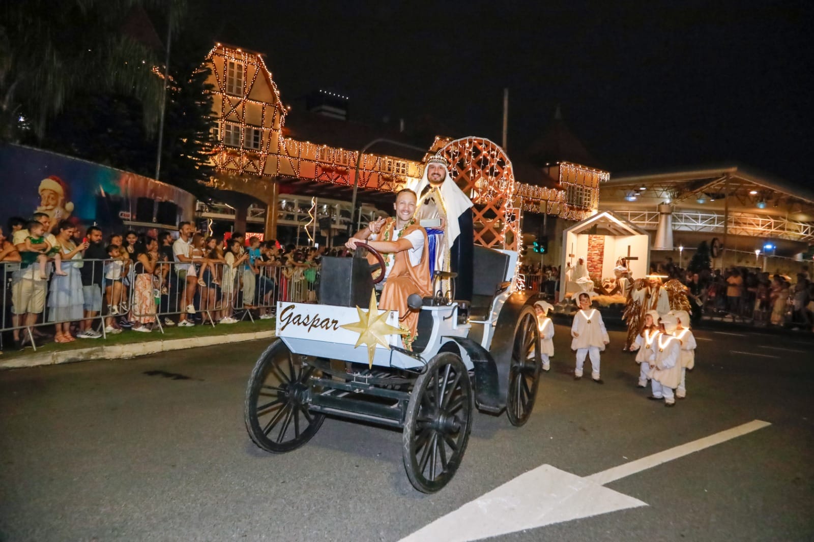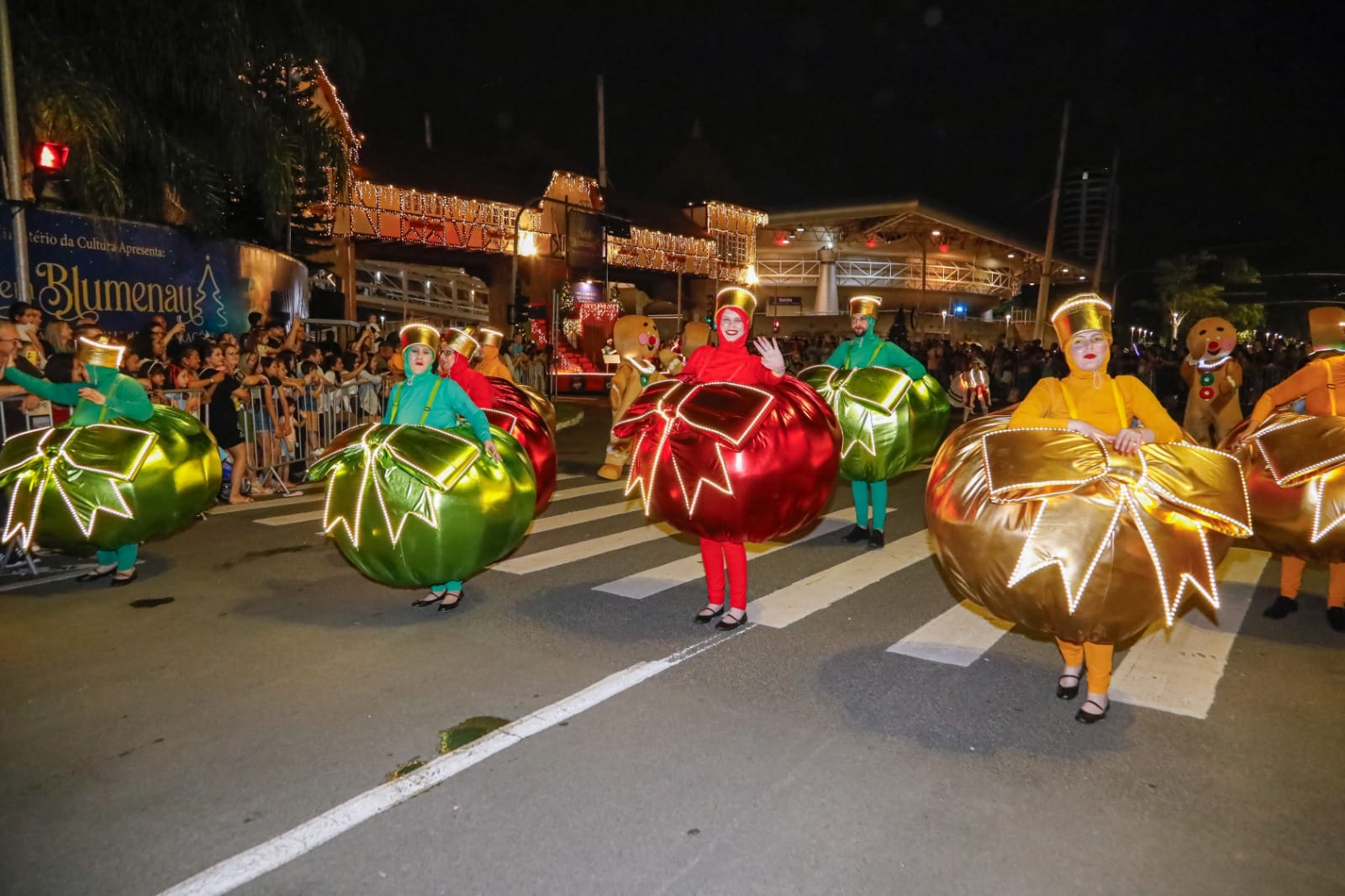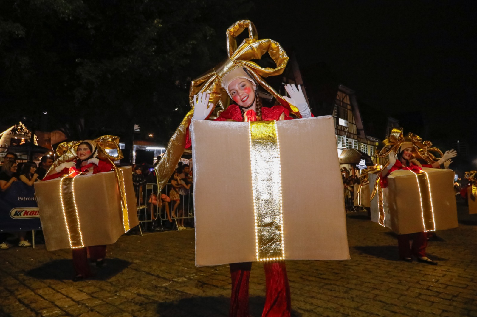 Vejas as fotos do 1º desfile do Natal 2025 em Blumenau