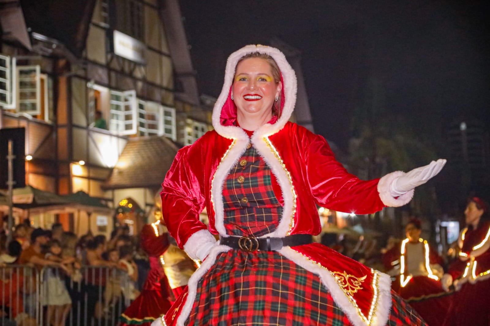 O primeiro desfile do Natal 2025 em Blumenau levou centenas de pessoas à região da Vila Germânica e encantou pelas cores, luzes e com a presença dos personagens. Com carros alegóricos decorados, o evento passou pela Rua Alberto Stein dando boas-vindas à tão esperada época natalina que colore a casa da Oktoberfest.