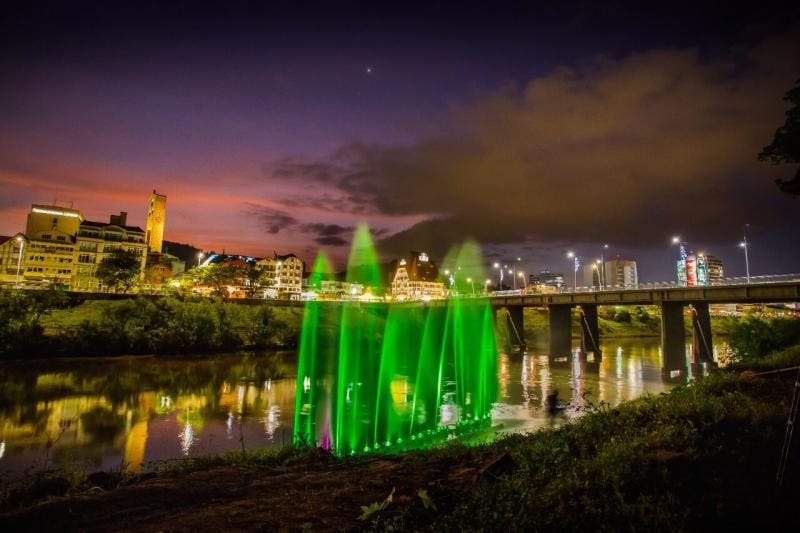São duas horas de apresentação com som e águas coloridas por luzes surgindo do rio, perto da ponte dos cadeados. Mesmo com chuva, o espetáculo deve acontecer todos os dias até 6 de janeiro.