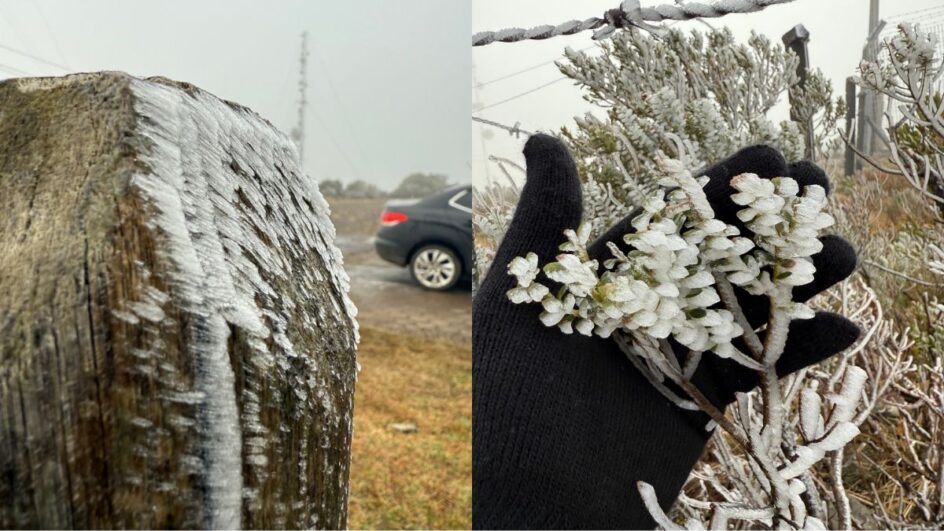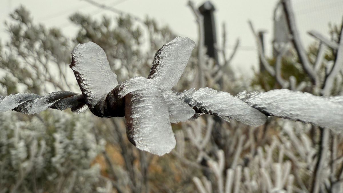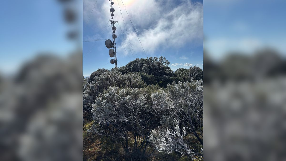 O frio voltou com força à Serra Catarinense nesta terça-feira (29) e trouxe um fenômeno pouco comum no Brasil: o sincelo. Em Urupema, no alto do Morro das Antenas, os termômetros registraram temperaturas negativas ao amanhecer.