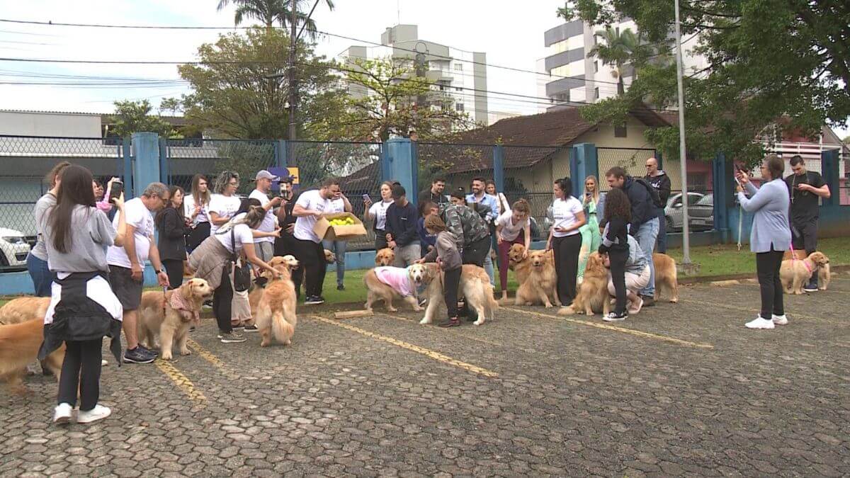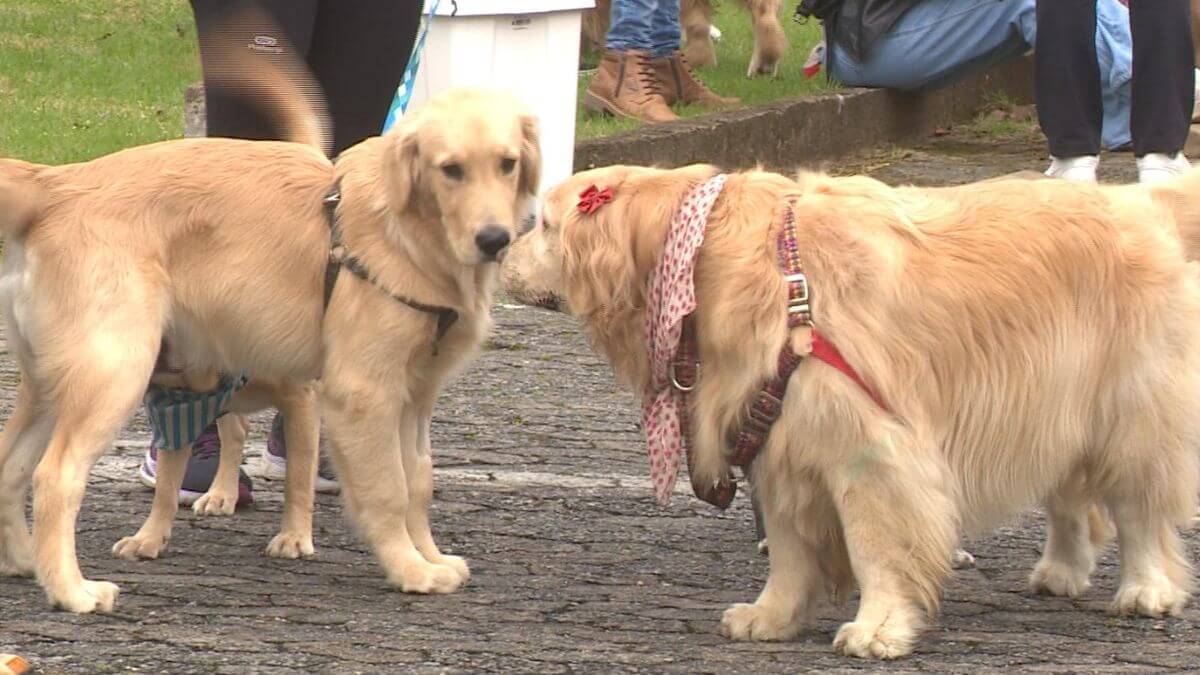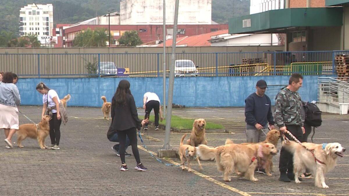 Tutores e cães participaram e brincaram durante o “encontro de goldens” no último sábado (2), em Joinville. No local, cerca de 30 cachorros da mesma raça se encontram, que também contou com a participação de são bernardos, poodles e shih-tzus, por exemplo.