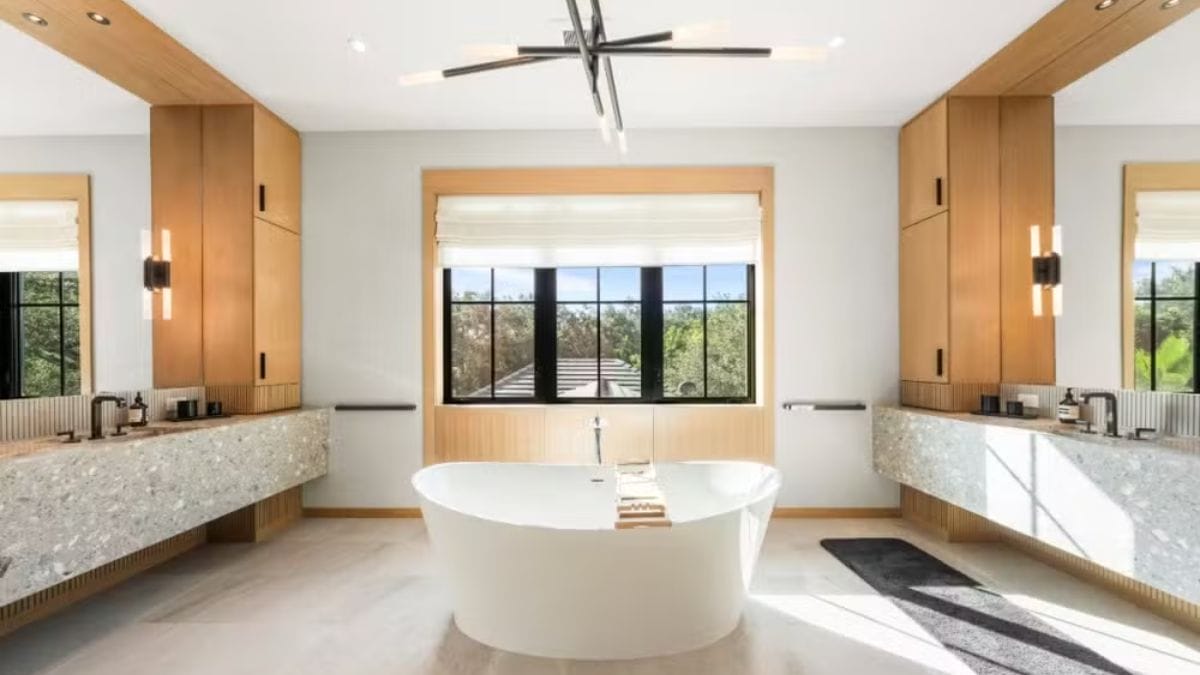 A casa conta com 966 metros quadrados e foi concluída em 2022. A mansão conta com design contemporâneo com estilo de vida de resort. Além disso, conta com sete quartos, cinema particular, academia e um sistema completo de automação residencial.
