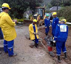 A Rua Paraná, no Bairro Vorstadt, foi a primeira a receber os trabalhadores. Um trecho de 50 metros foi aberto para a colocação de tubulação.
