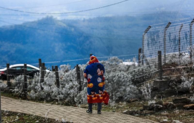 — Nunca senti tanto frio. É a primeira vez que vejo tudo congelado assim, é lindo. Estou na expectativa pela neve, nunca vi antes — conta enquanto se protege do vento frio na área fechada do mirante do Morro das Antenas, que na sexta-feira registrou a temperatura mais baixa do Estado: -4,3 ºC, com sensação térmica de -13 ºC.