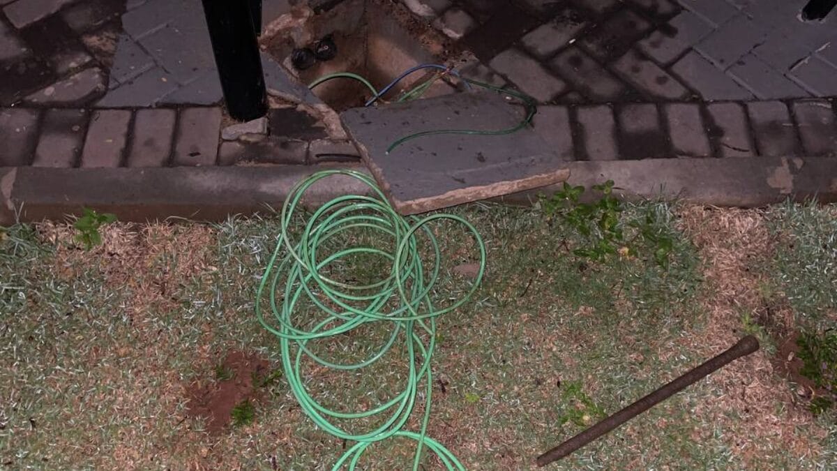 Durante a verificação na praça, os policiais constataram que as caixas de luz estavam arrombadas e toda a fiação havia sido furtada. O suspeito estava com um saco que tinha aproximadamente 24 quilos de fio. Além disso, próximo ao local, foi encontrado um pé de cabra, possivelmente usado para o arrombamento.