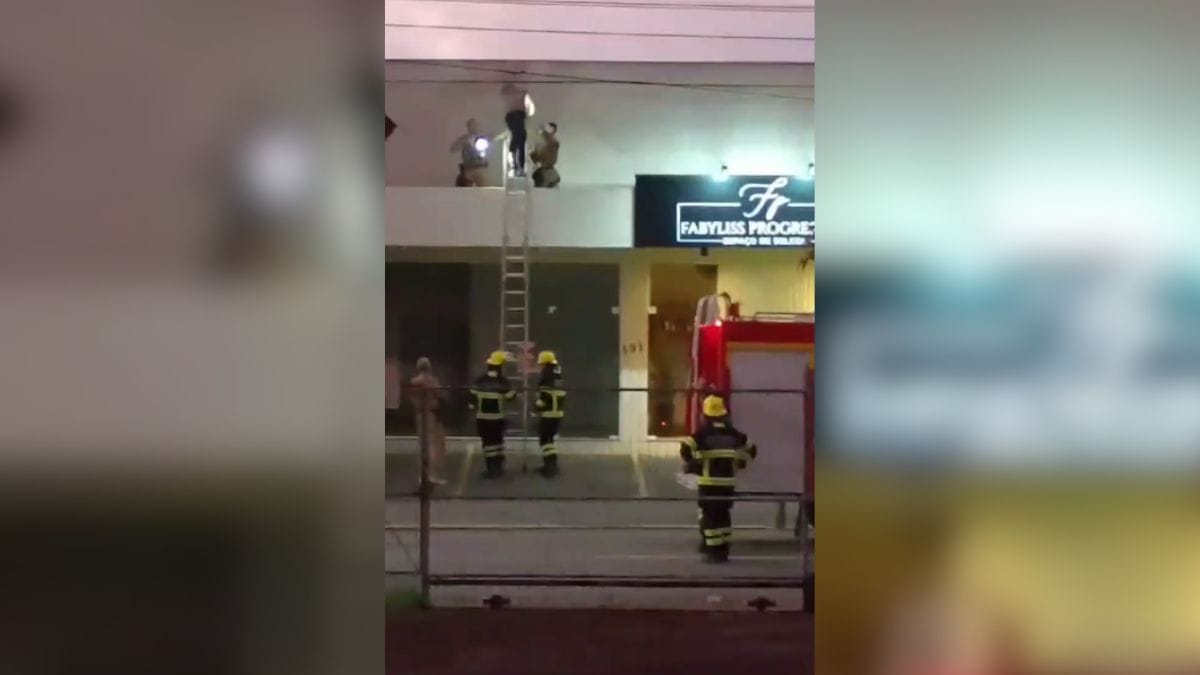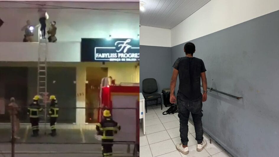 Para tentar alcançar o segundo homem, as equipes precisaram de uma escada, usada para acessar o telhado do prédio. Apesar da tentativa de fuga, o suspeito acabou preso.