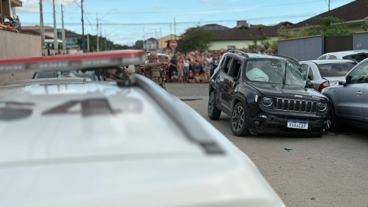Segundo informações obtidas pela NSC TV no local, o condutor do Jeep Renegade fugia dos policiais com o carro furtado quando bateu em carros estacionados na rua Vitorino Silvino Bittencourt, no bairro Aventureiro, em Joinville.