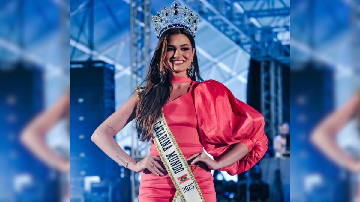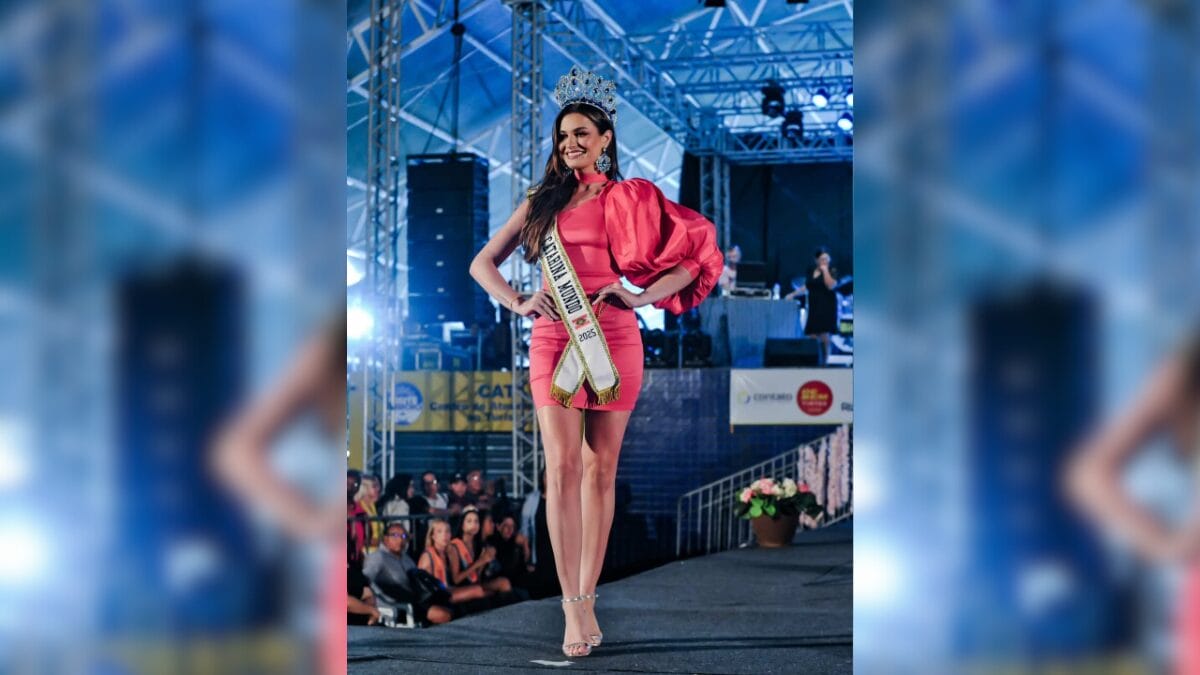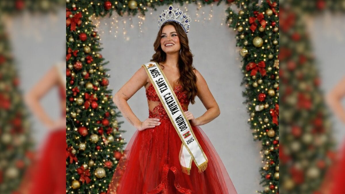 Camilly Ceccon, de 21 anos, é natural de Itajaí e representa Santa Catarina na competição Miss Brasil Mundo. A jovem foi coroada como Miss Santa Catarina Mundo em 2025, e avançou para a etapa nacional do concurso.