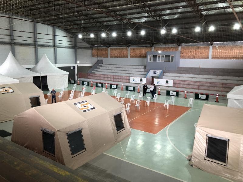 Serão três consultórios médicos, uma tenda para coleta de exames, uma para pacientes em observação e uma para farmácia. Além disso uma ambulância também estará à disposição para caso de emergências e uma van vai estar disponível para faze o transporte de pessoas até o ginásio.